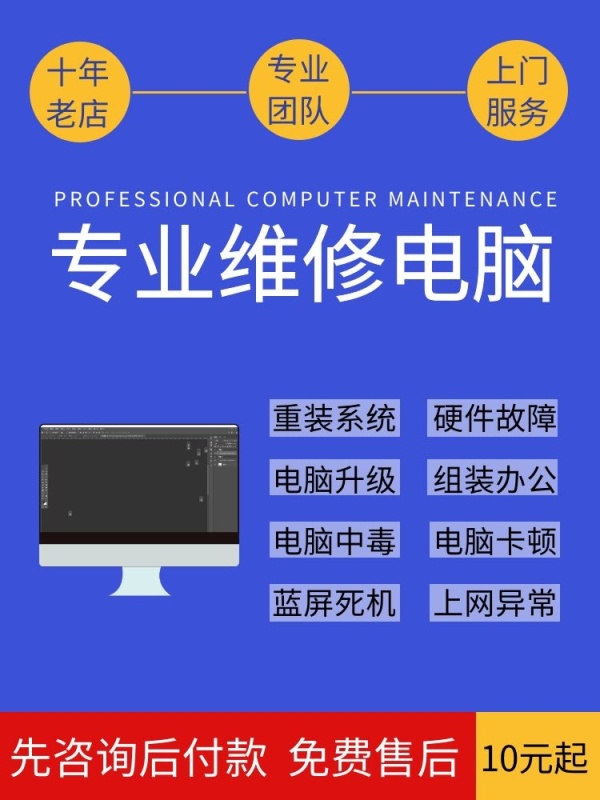 简约蓝黄专业维修电脑直通车主图