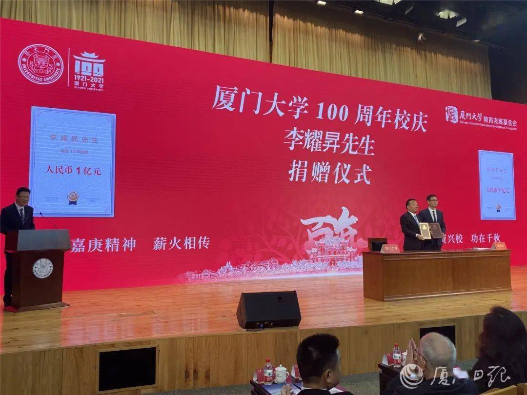 今天,距离厦大百年校庆100天,他向母校捐赠一亿元!