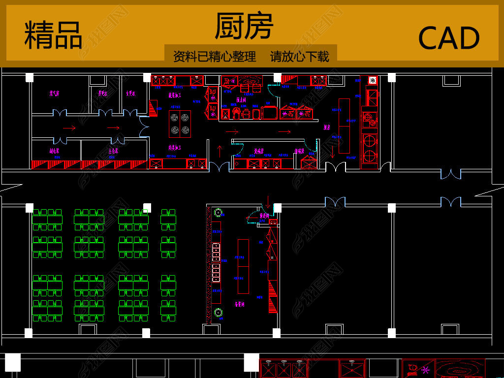 酒店厨房给排水、排烟、厨房设备全套设计图