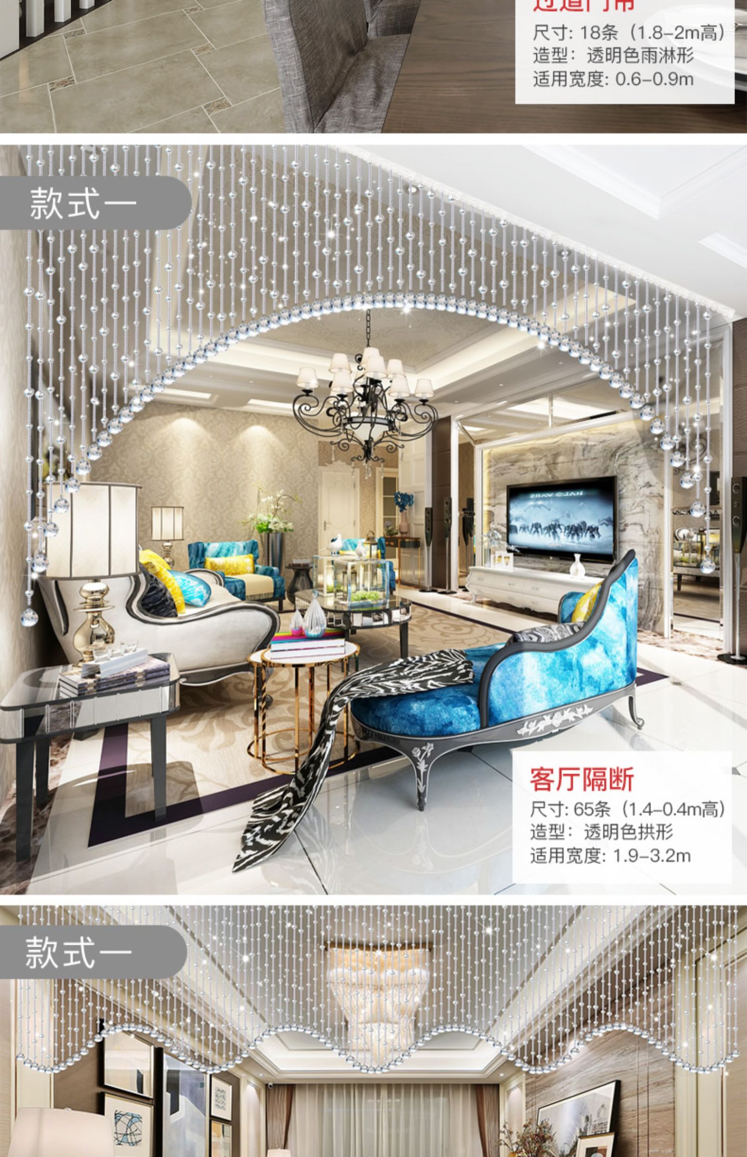 苏菲亚水晶珠帘隔断帘风水客厅卧室欧式新款卫生间吊门帘子免打孔
