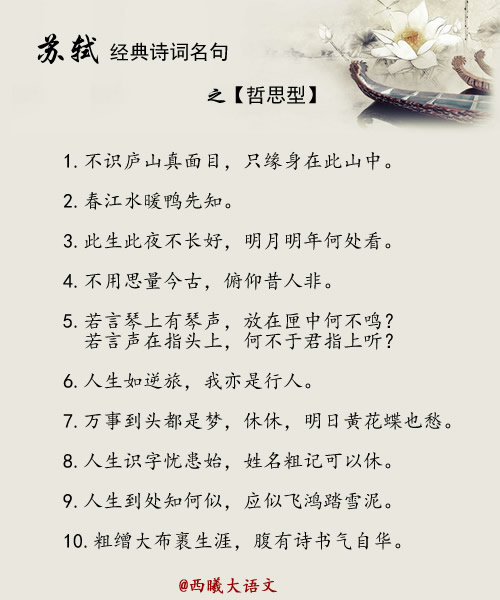 百读不厌苏东坡:苏轼诗词名句精选(50句)