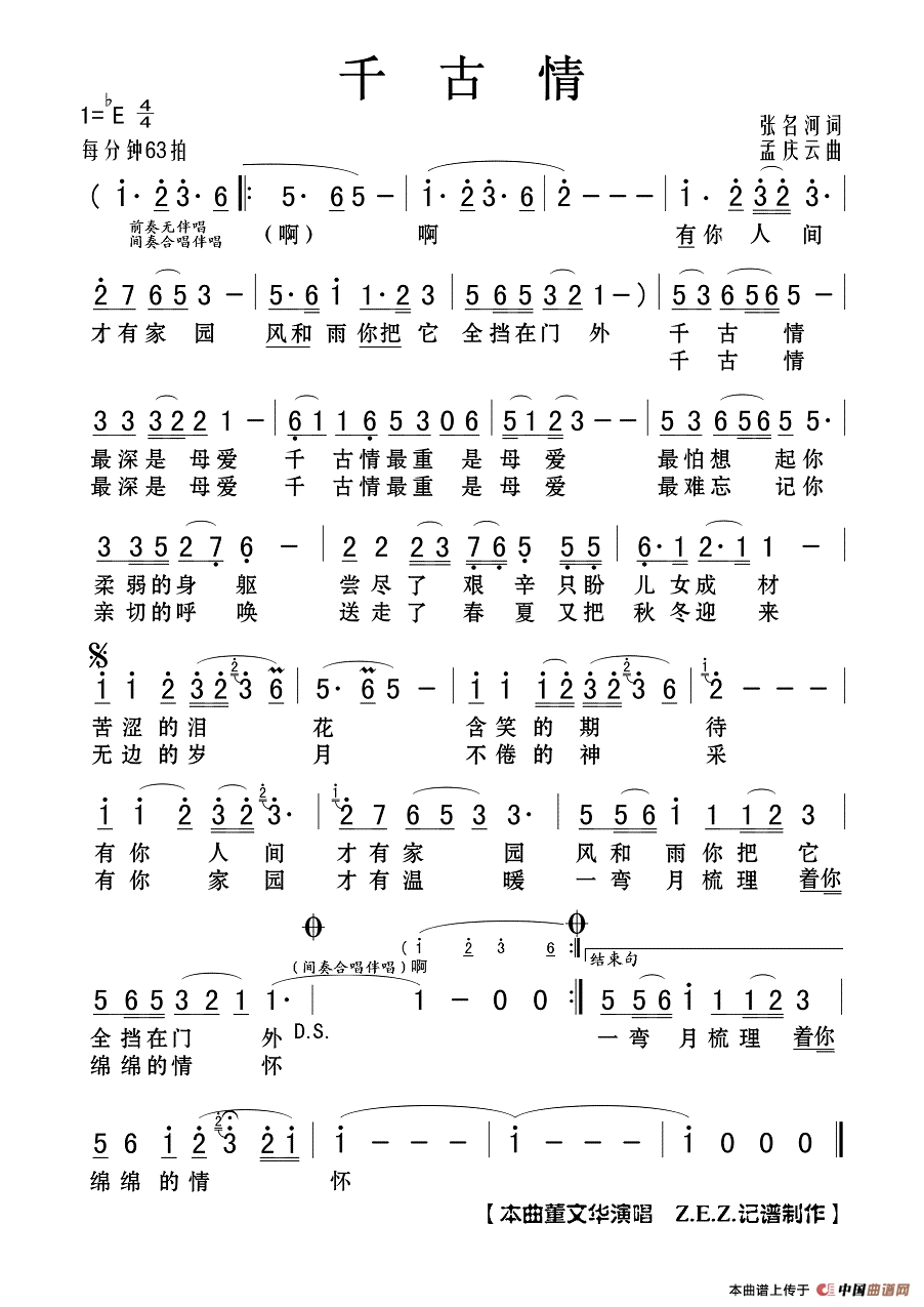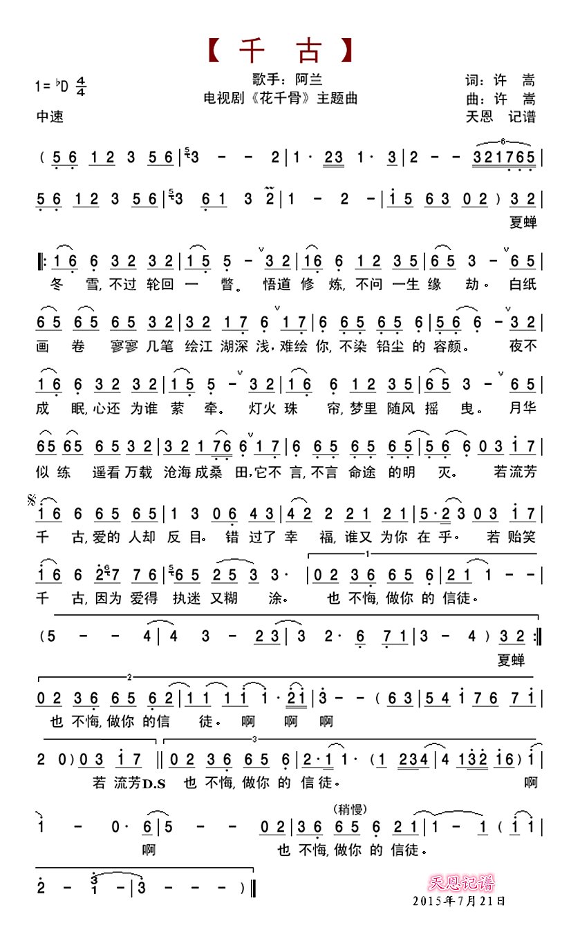 【千古情(张名河词 孟庆云曲)】歌曲曲谱