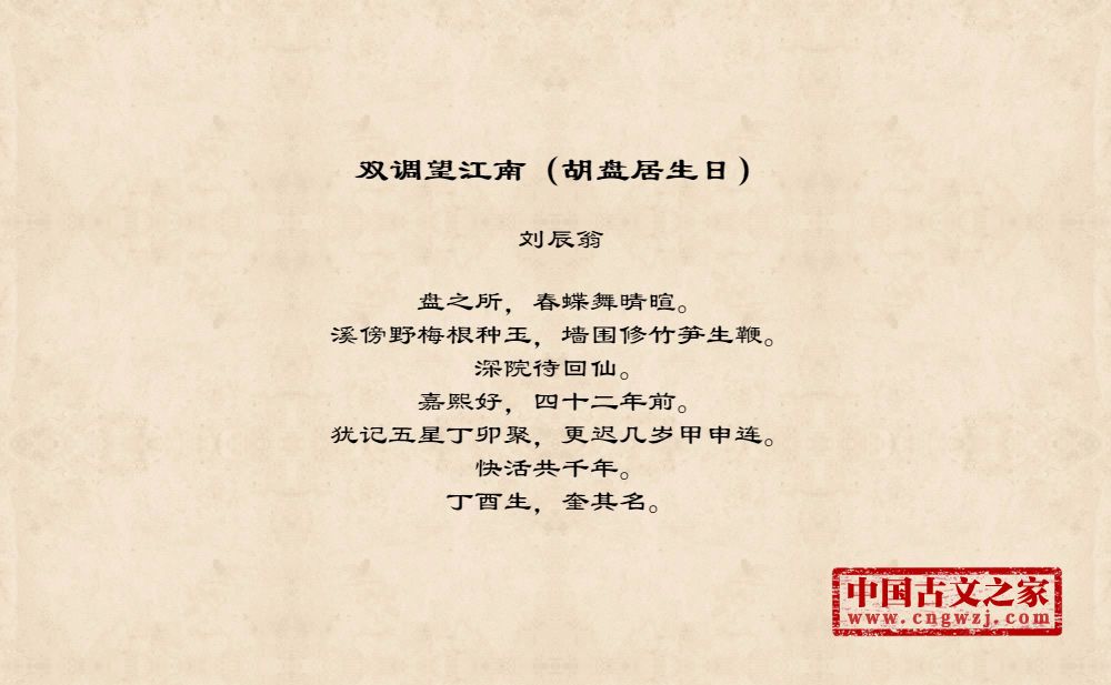 双调望江南(胡盘居生日)图片大全,古诗双调