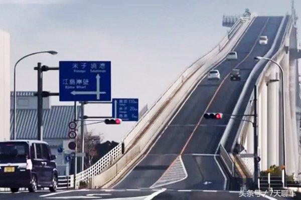 日本江岛大桥坡度逆天 过桥犹如过山车(