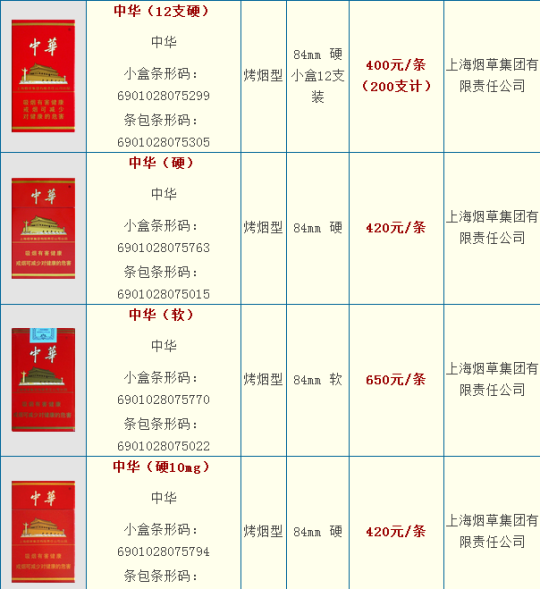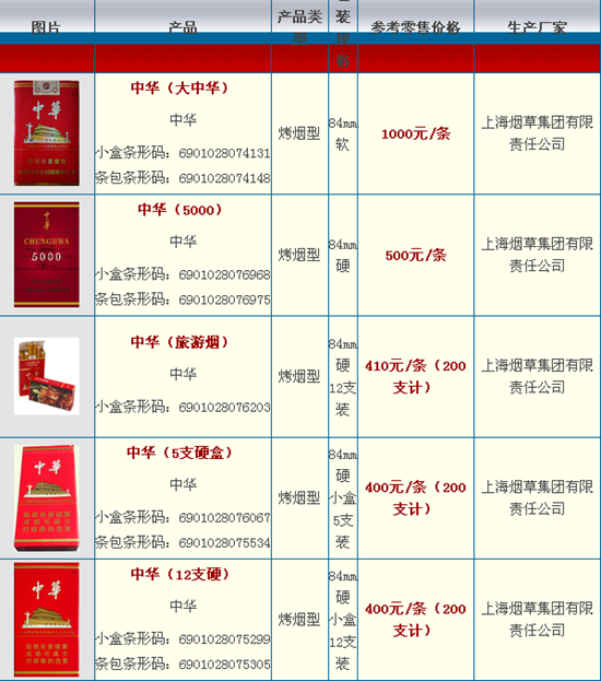 上海中华烟价格表和图片大全的搜索结果_百度图片