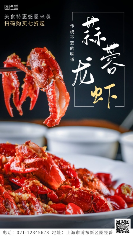 创意摄影风蒜蓉小龙虾特惠宣传手机营销海报
