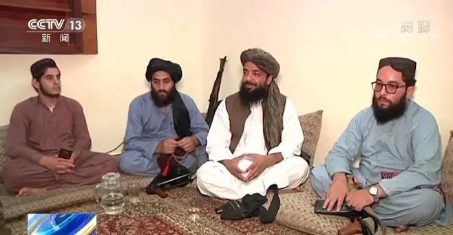 塔利班宣布建国后,有民众爬杆悬挂阿富汗