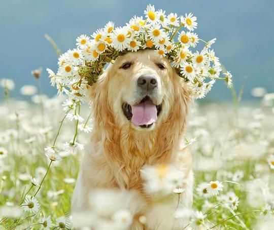 呦西! 金毛犬瞬间变成花故娘, 这样的金毛你们喜欢吗