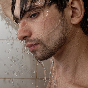 一个,和,班霍,沐浴,身体,滴,面对,坠落,头,