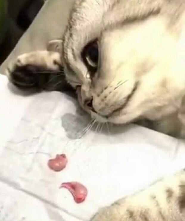 医生给猫咪做绝育手术,还把割下来的蛋蛋给它看,猫咪直接哭了!