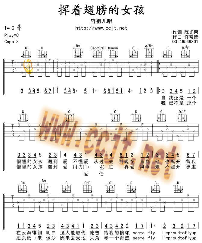 挥着翅膀的女孩吉他谱