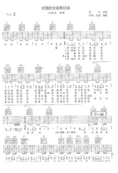 对面的女孩看过来吉他谱六线谱