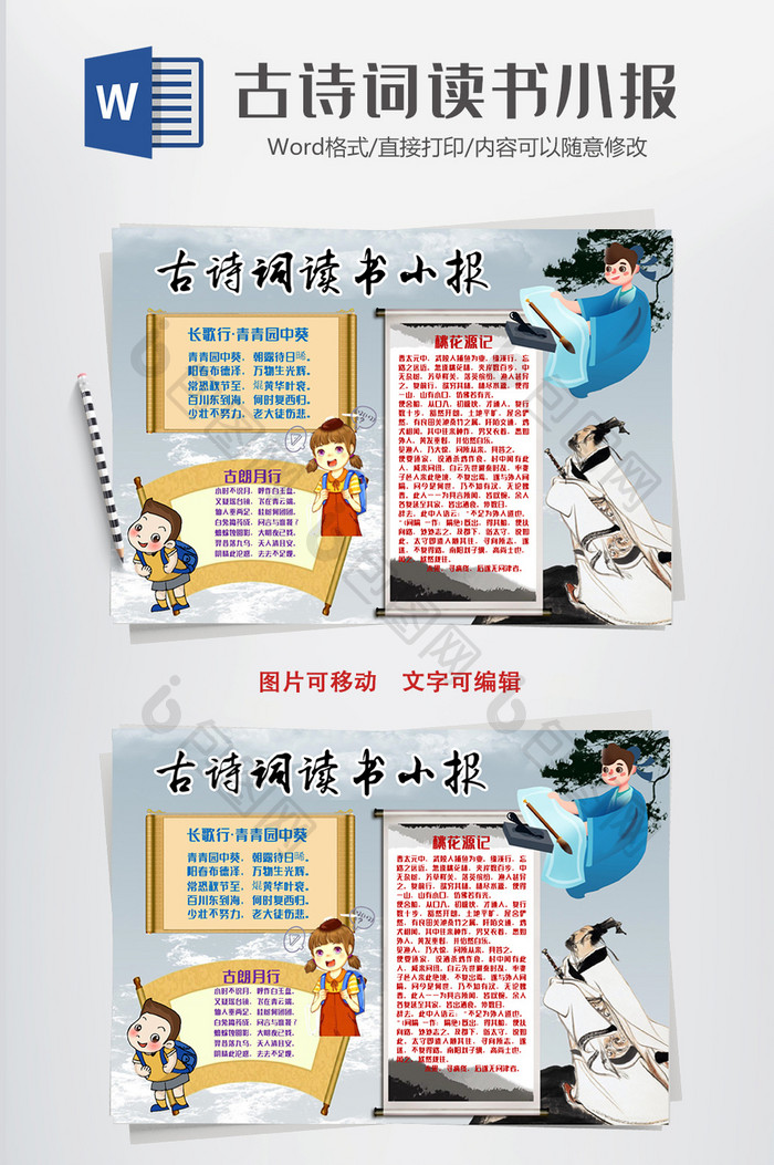 诗圣杜甫国学读书古诗词手抄报Word模板