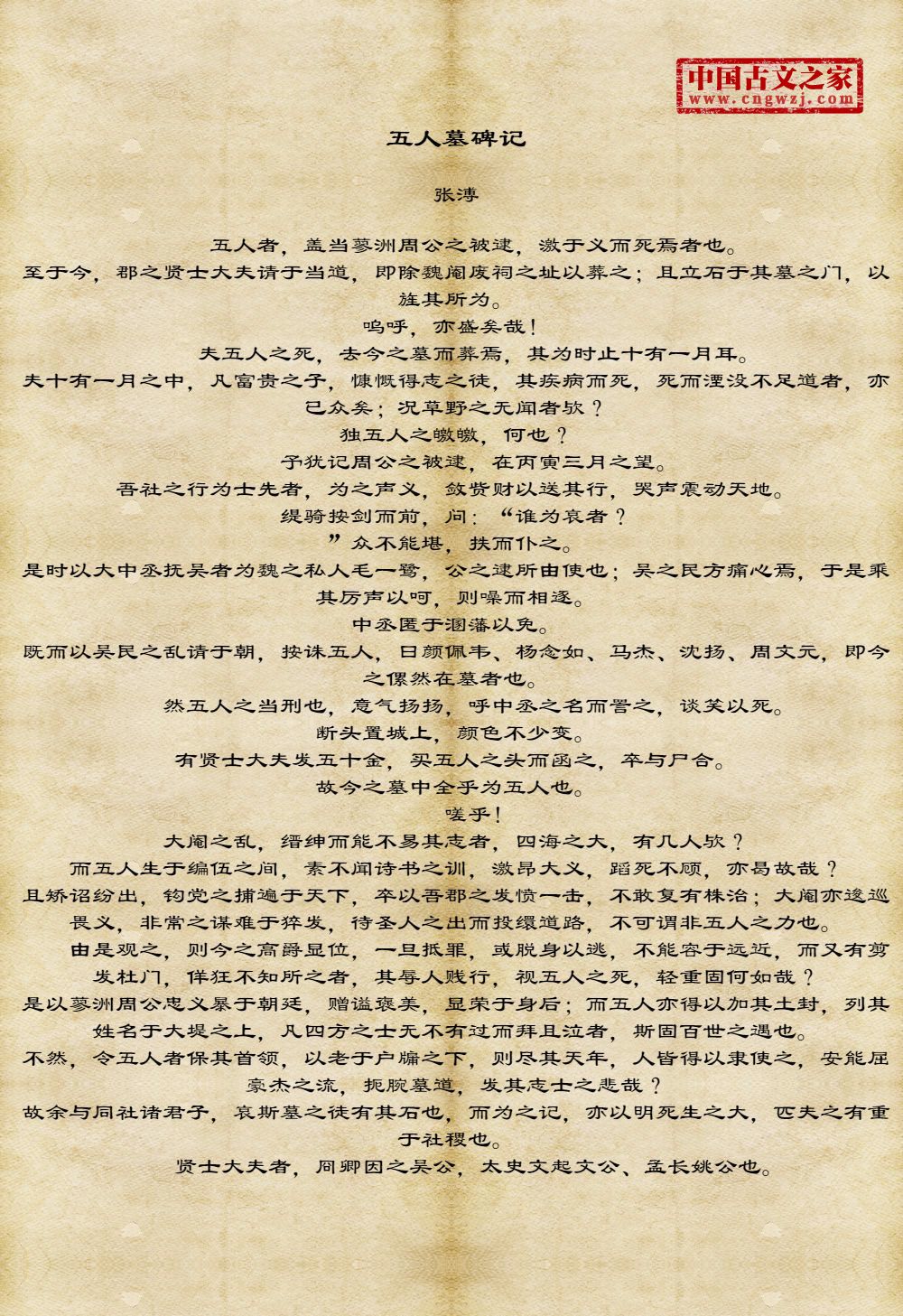 五人墓碑记译文