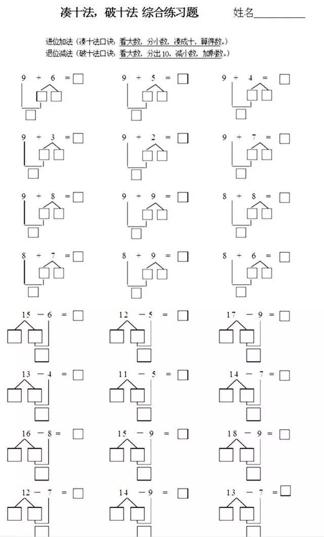 20以内加减法口诀表,随时拿出来教孩子!收藏!