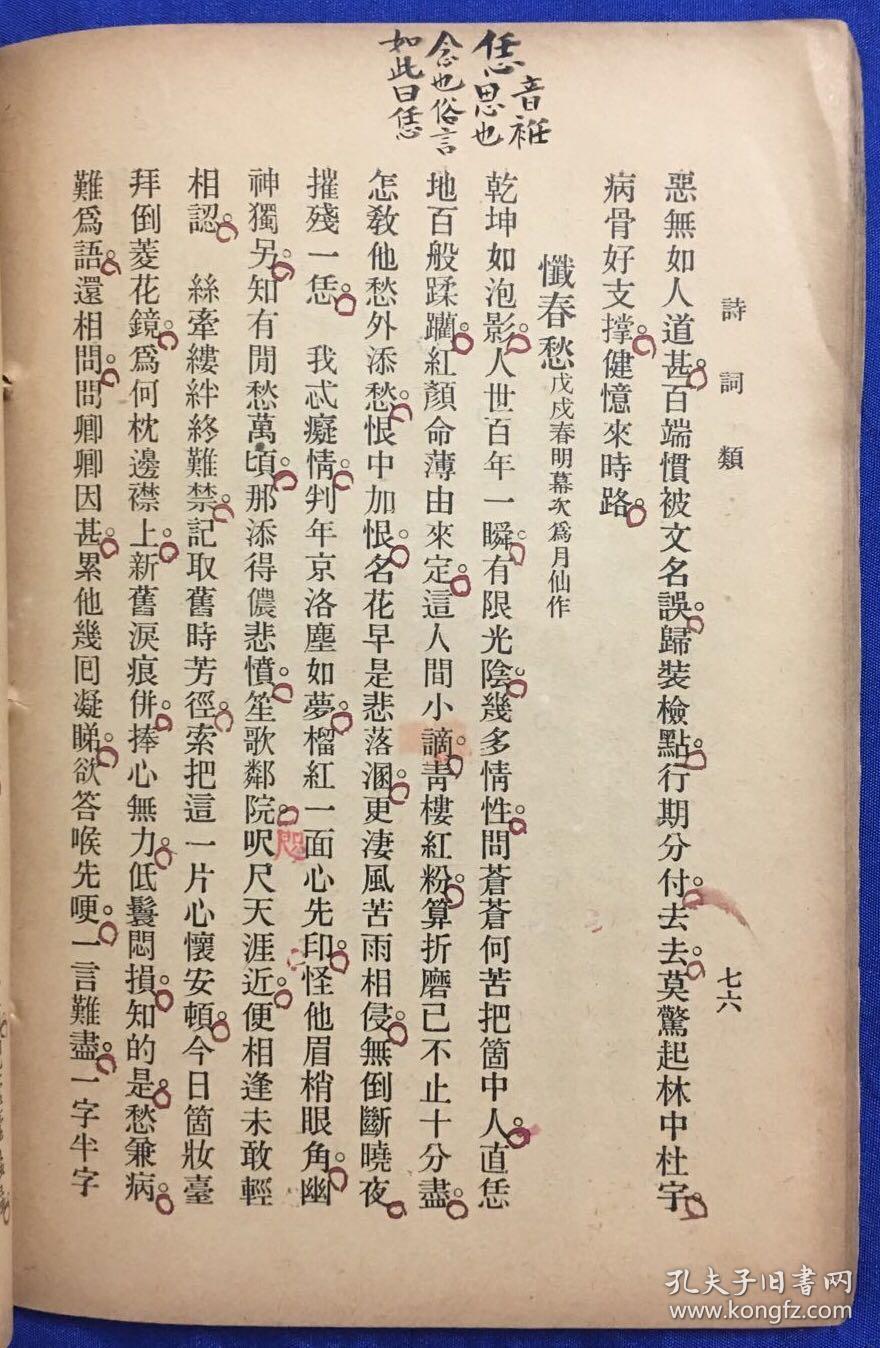 【图】民国书《迟庐杂存》(诗文集)徐建生\/自印本\/1940年印\/106页,前页为作者手迹及题词、钤印图片,其中一枚闲章为原章钤盖,内文红笔句读,红色铅字校改