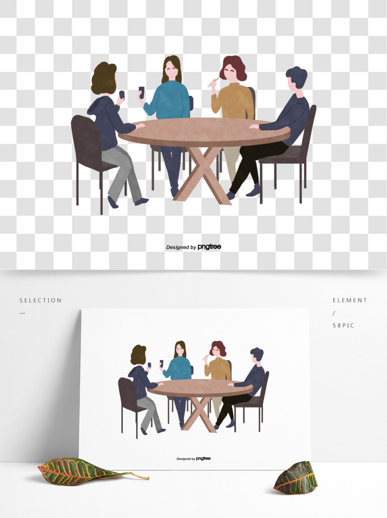 卡通餐桌前聚餐的人物模板免费下载_psd
