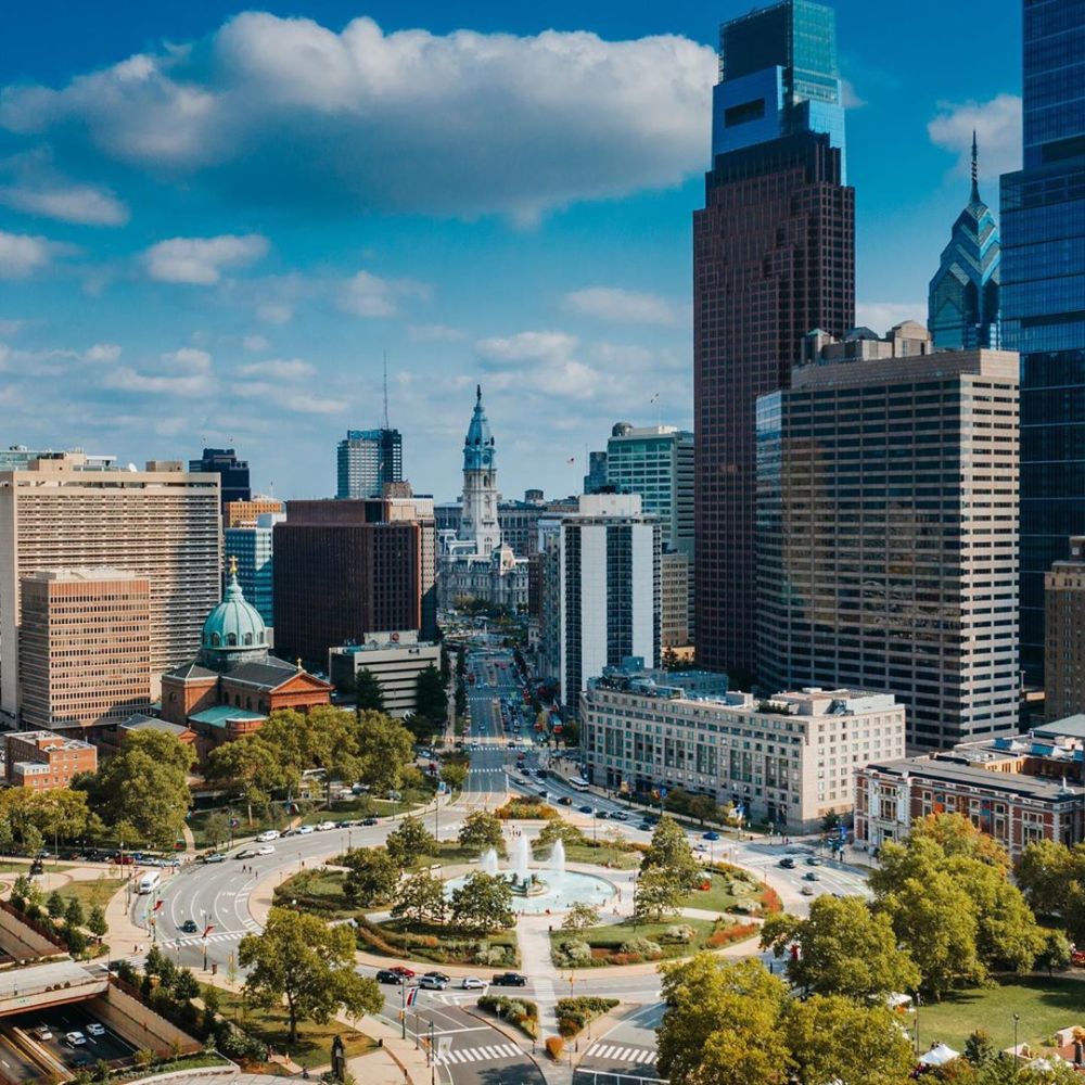 公园和市政厅,费城,宾夕法尼亚州,美国。