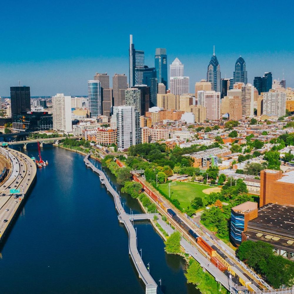 费城的轮廓和特拉华河费城宾夕法尼亚州美国