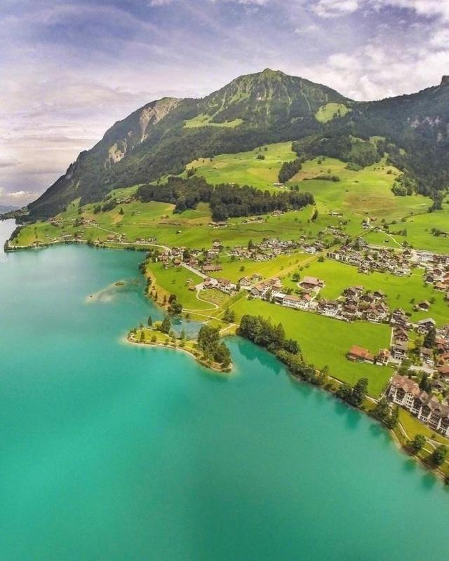 当时我就惊呆了!瑞士一个叫龙疆的湖畔小镇,整个画面太美了!