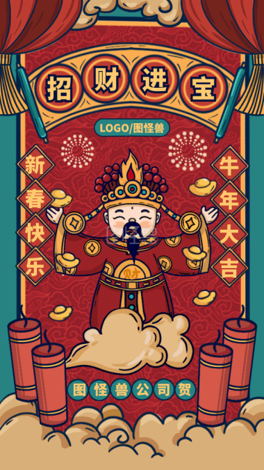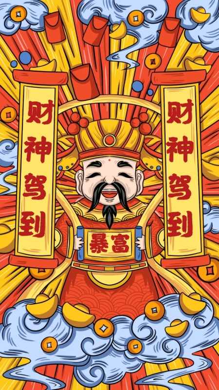 着恭喜发财的卡通财神爷欢乐手机壁纸图片