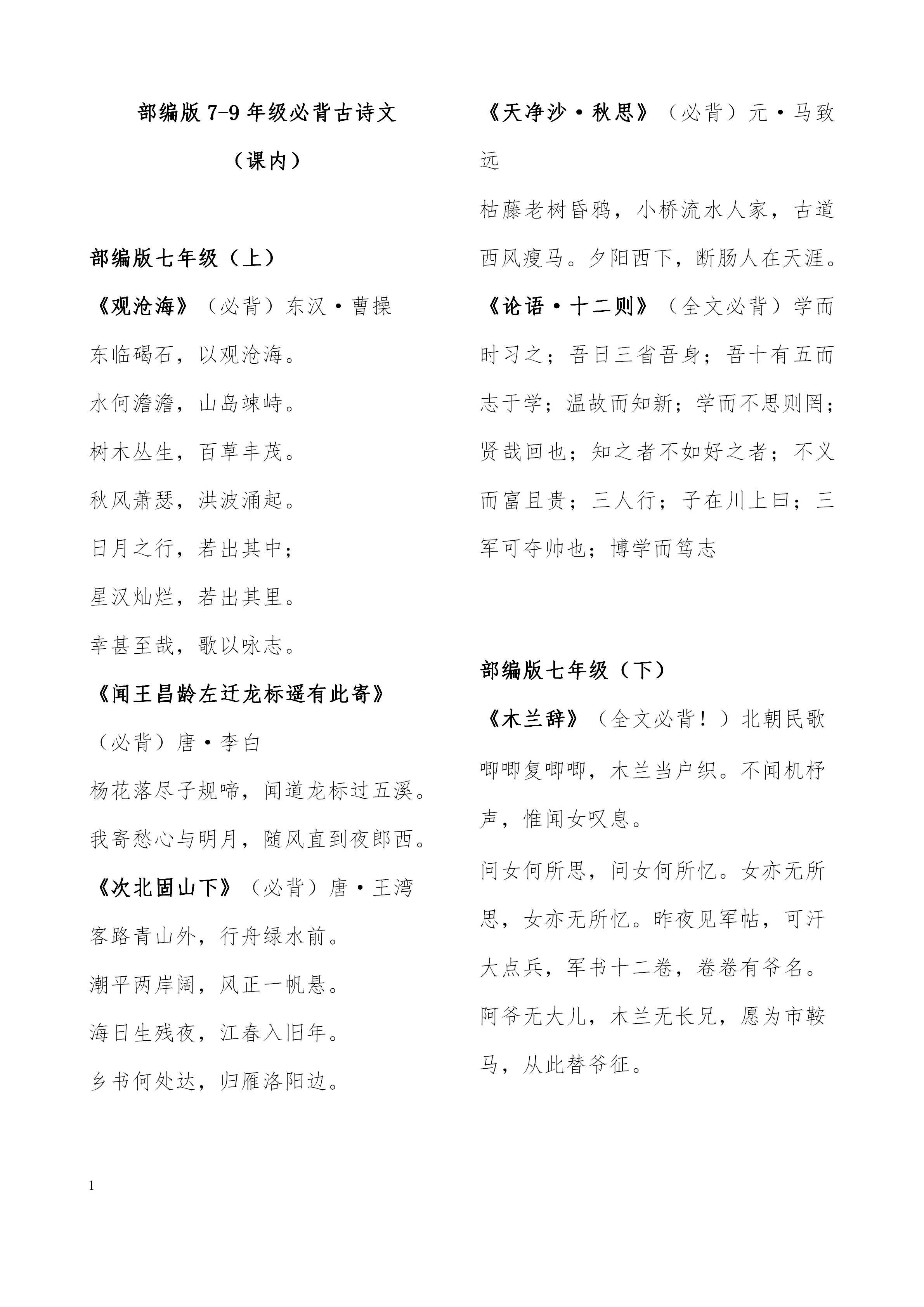 初中生必背古诗文名句名篇 语文基础知识