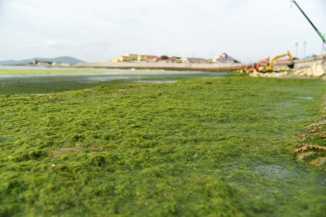 山东青岛遭最大规模浒苔侵袭 网友:能吃吗?