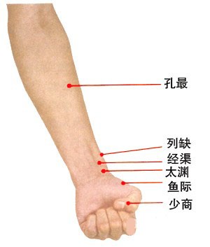 人体穴位大全--孔最穴:咳嗽、气喘、咽痛、