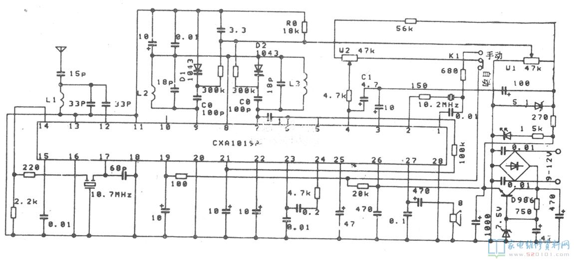 采用CXA1019电调谐调频广播接收机电路