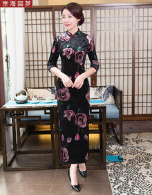 金丝绒旗袍裙,时髦妈妈们的冬季盛装,酒宴、演出时尚中国风