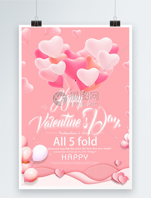 粉色全英文情人节促销海报