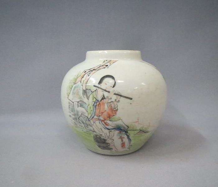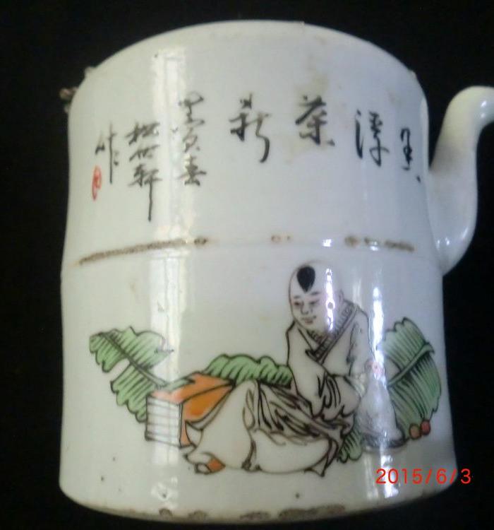 许善琴松竹轩款浅绛人物竹节壶_许善琴