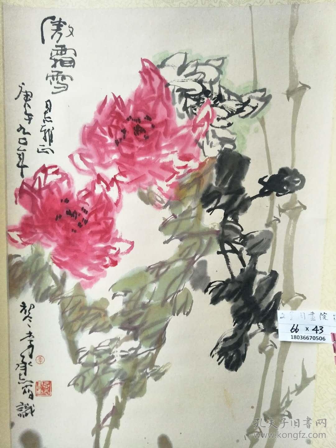 山东著名书画家李承志花鸟挖款66X43保真