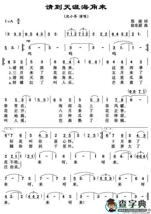 我爱五指山我爱万泉河 (乐谱\/视频)