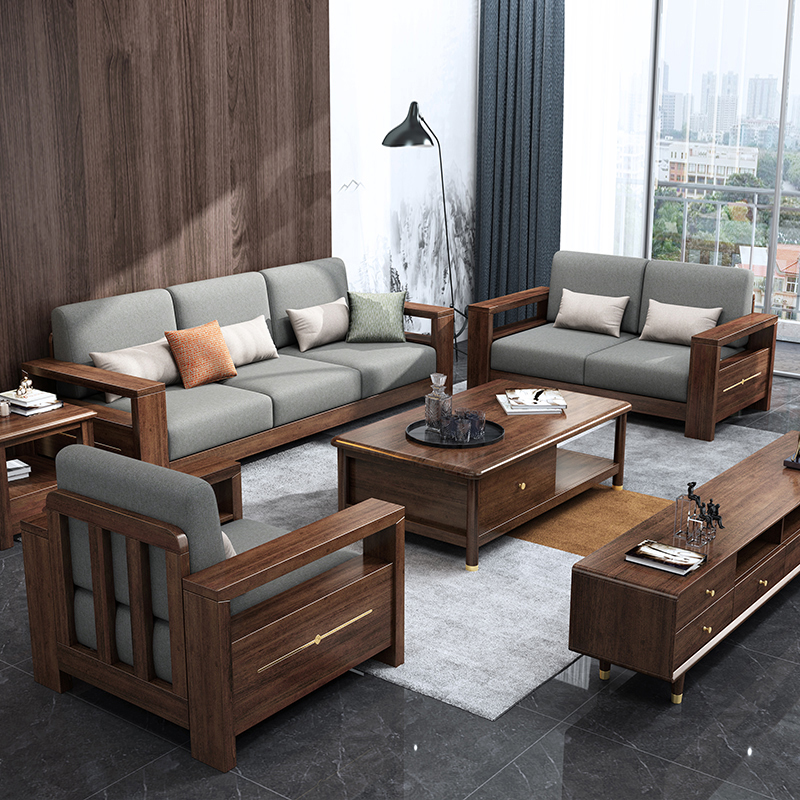 实木客厅家具 实木沙发 木加布三人组合沙发 全胡桃木实木沙发806