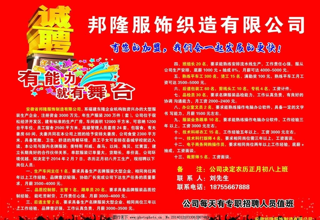 邦隆服饰大招聘图片