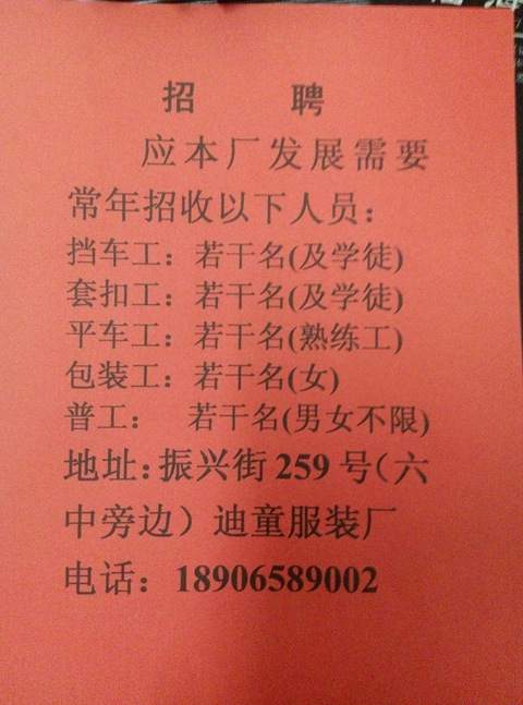 服装厂招工单页