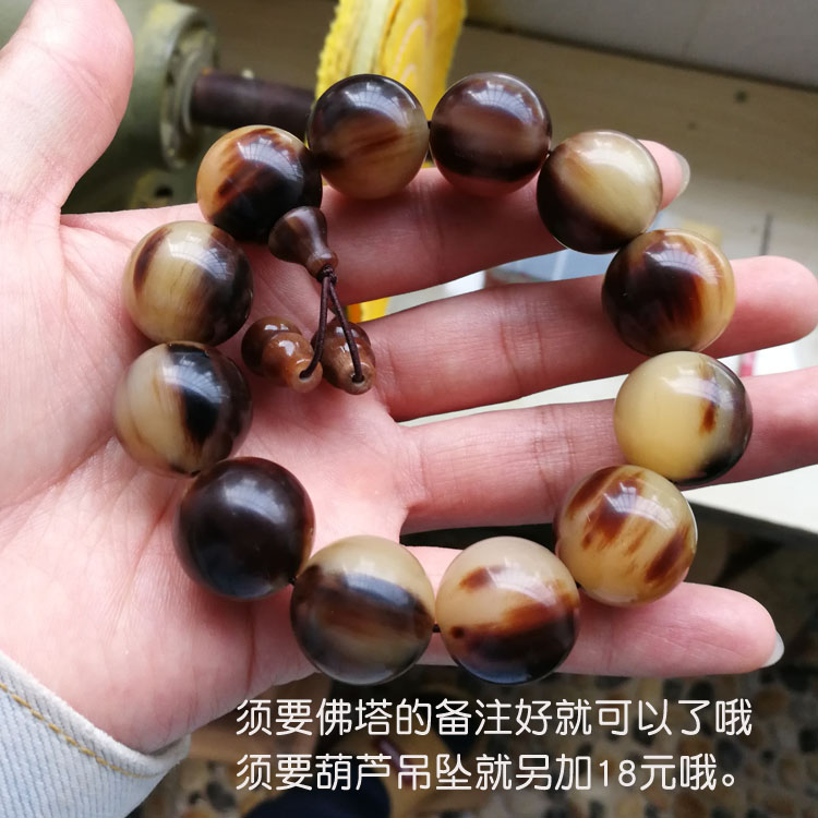 牛角手串男士西藏血丝佛珠牦牛角手串文玩