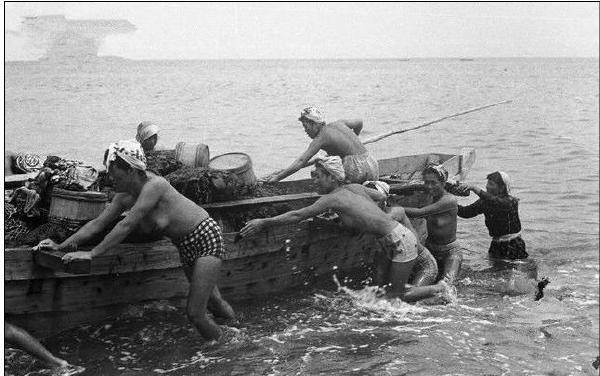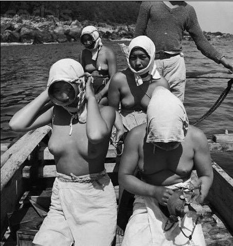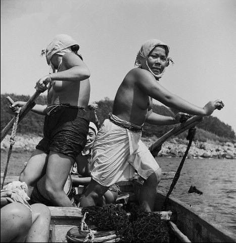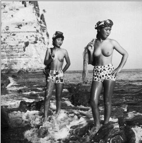 1947年赤裸的日本海女潜海捕捞老照片