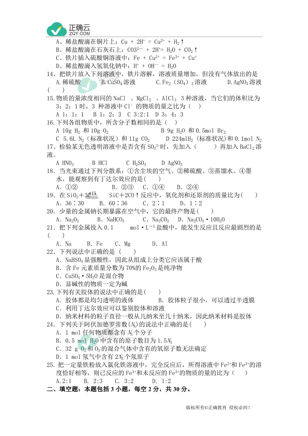 2019学年湖南邵阳市双清十一中高一(上)