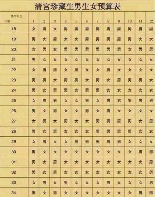 1,清宫表,怀孕时的虚岁年龄和农历月份