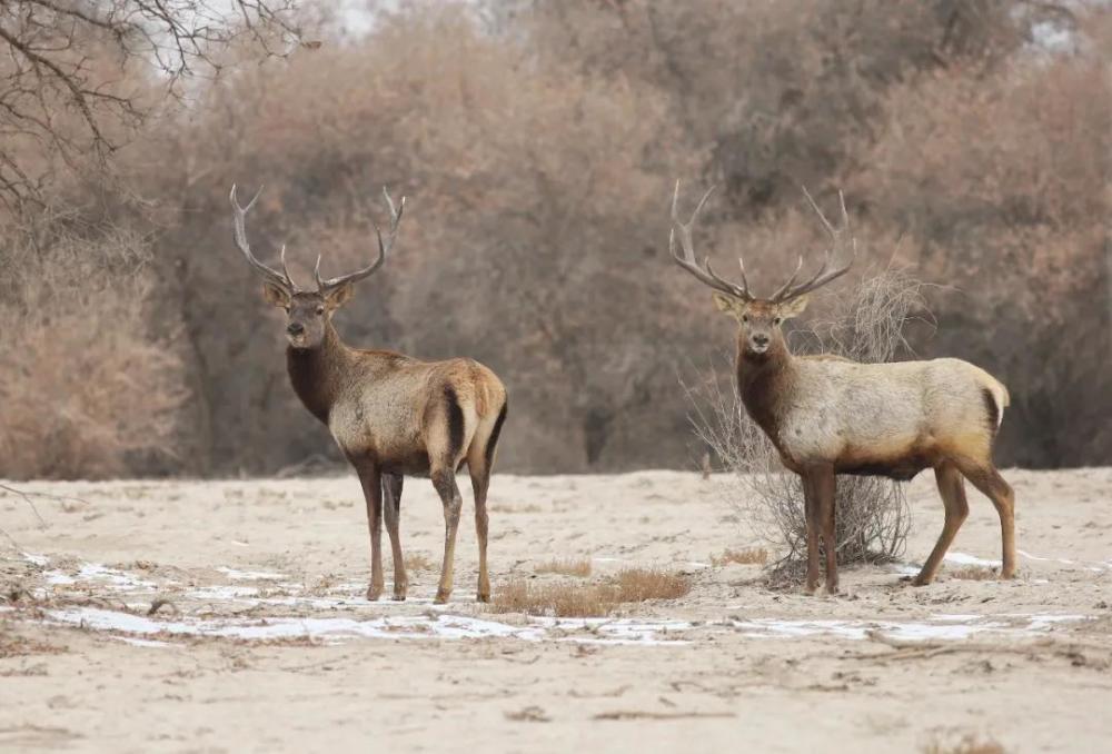 塔河胡杨林保护区再现野生塔里木马鹿,已