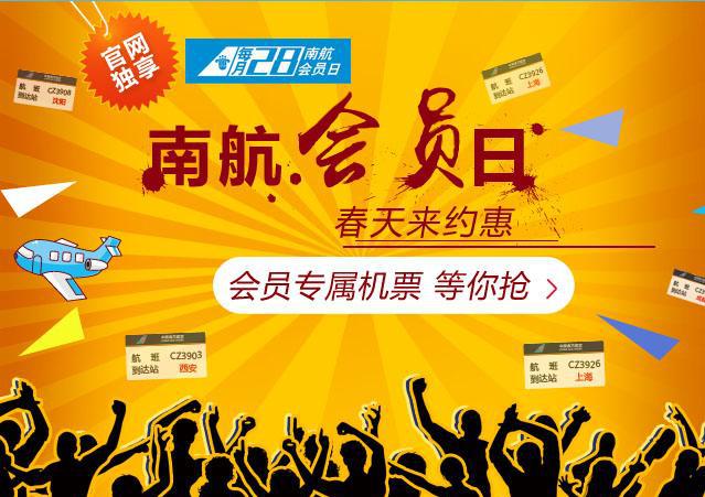 28号南航会员日!广州,杭州,武汉,大连,西安
