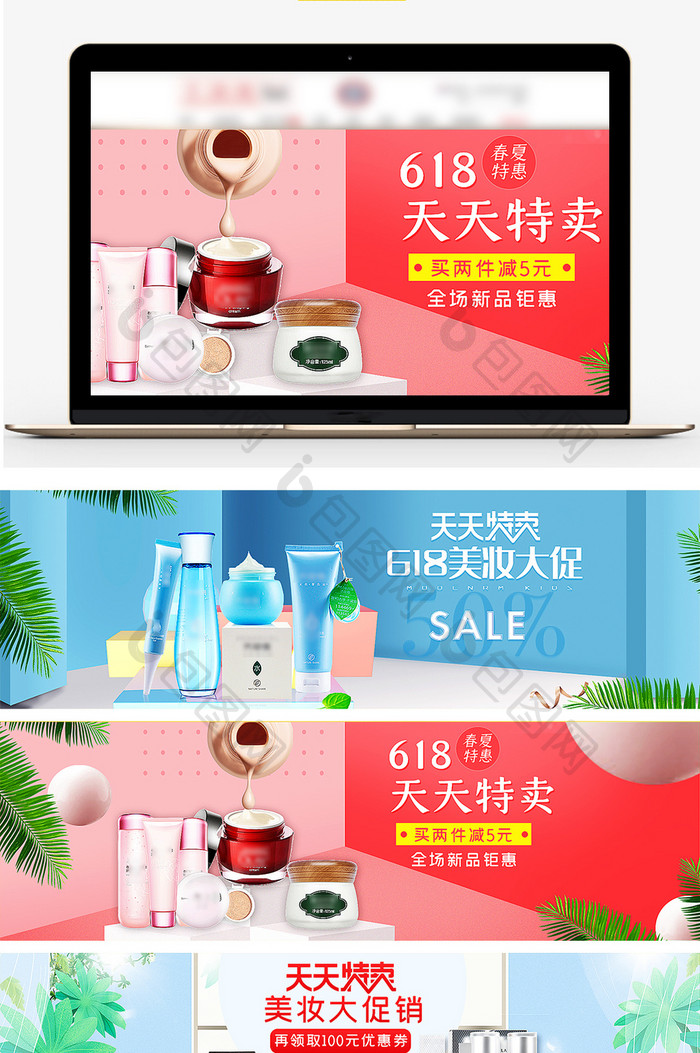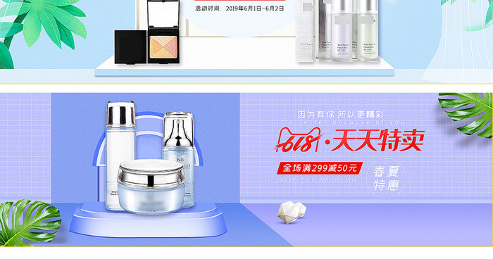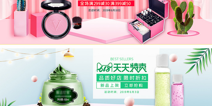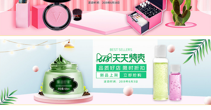 淘宝天猫618天天特卖化妆品粉色促销海报