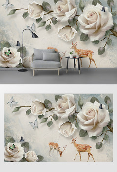 玫瑰花蝴蝶小鹿电视背景墙.图片
