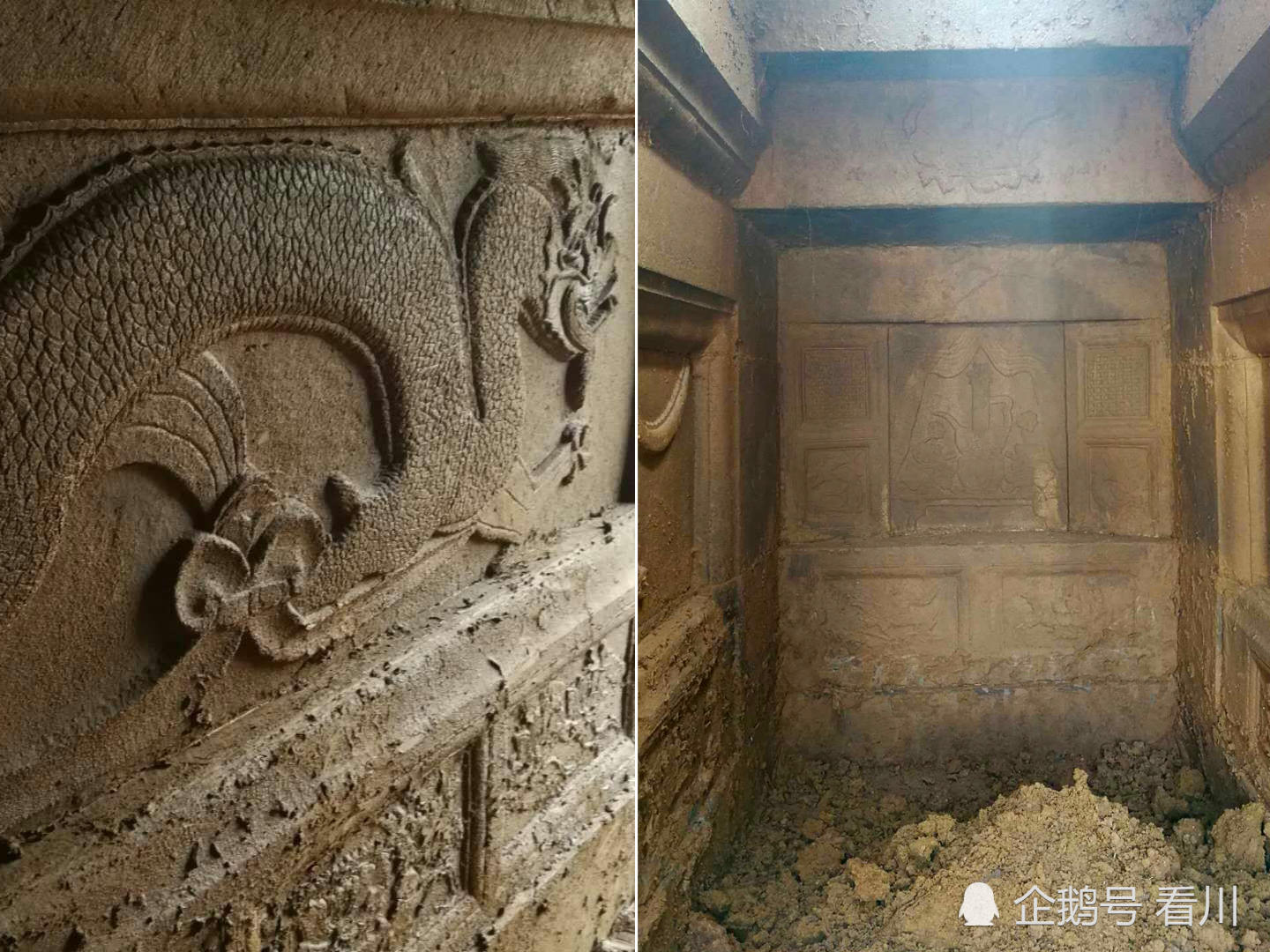 农村工地挖出千年宋代古墓,墓室内有龙
