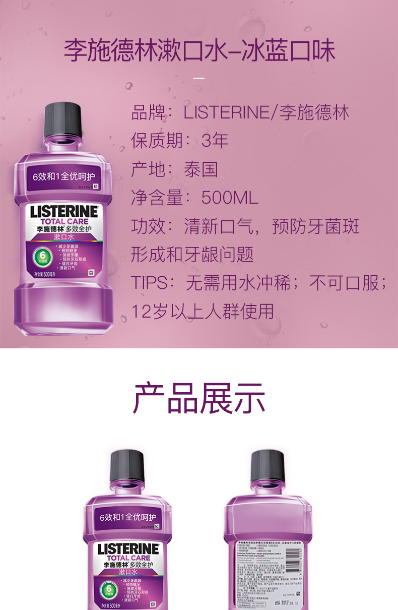 李施德林漱口水500ml*3多效全护去除口臭口气防蛀泰国进口漱口 李施德林(LISTERINE)漱口水\/口喷【价格 图片 品牌 报价】-苏宁易购文腾商贸强生品牌专营店