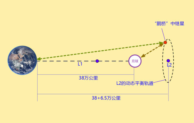 鹊桥中继卫星,在地月拉格朗日L2点,为嫦娥探月通信服务