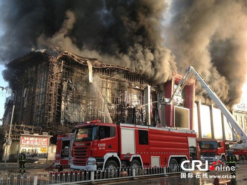 北京喜隆多商场大火 两名消防员殉职(图)