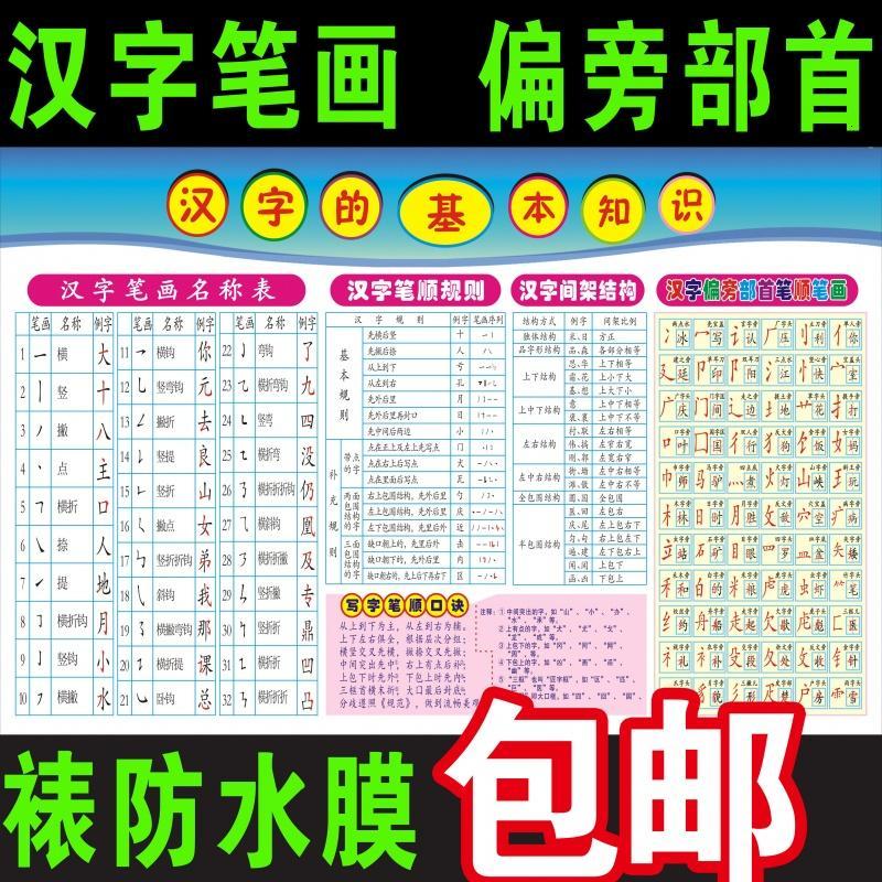 汉字笔画名称表墙贴小学生常用偏旁部首